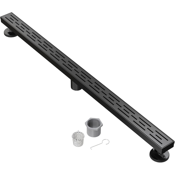 - Hair Strainer, Leveling Feet, And Threaded Adapter- This linear floor drain is easy to install with leveling feet keeping the drain channel lifted and a threaded adapter for drain setup into the flange. The hair catcher captures hair and prevents drain clogging.