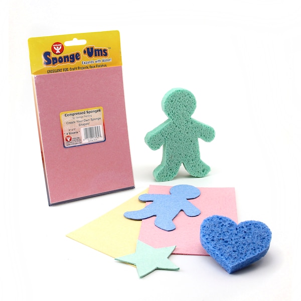 Use Compressed Sponges by Hygloss when you want great quality, highly resilient craft sponges that you can cut into any shape or object. Craft sponges can be used for sponge painting on walls, making borders, designing t-shirts and more. Each compressed sponge sheet measures 5" x 7". Each pack includes 4 sheets. Sold as 3 packs for a total of 12 sheets.
