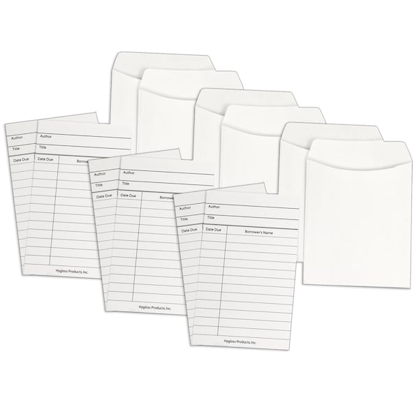 Library Cards + Non-Adhesive Pockets Combo, White, 30 of Each, PK3