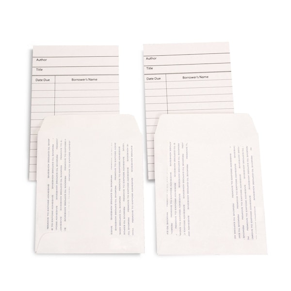 Library Cards + Self-Adhesive Pockets Combo, White, 150 Each/300 Pieces, 300PK