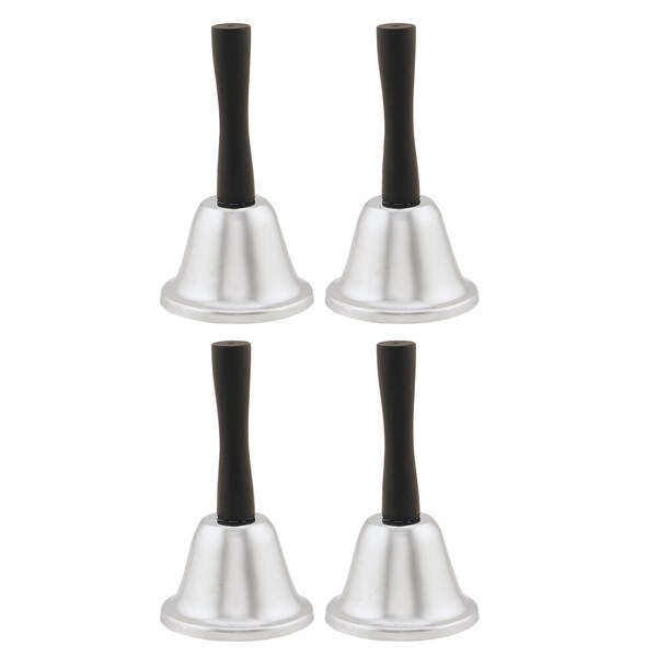 A teacher's hand bell is one of those essential teaching aids that no classroom is complete without. You'll be surprised at how such a simple tool is so effective when it comes to classroom management. Just ring this classic hand bell when you need your students to listen. Need to restore order to a rowdy classroom? Students so engaged in their play/reading/artwork that they don't realize it's time to transition activities? Your hand bell is at your service to get everyone's attention quickly and easily. Tell your students in advance that the next time they hear the bell ring, it will be time for lunch, snack, recess or cleanup, and their transitions will be so much smoother. Make it a game - whoever sits down/cleans up/gets in line the fastest gets to ring the bell the next time. Turning ringing the bell into a privilege makes a great reward for good listeners." Sold as a pack of 4 hand bells.