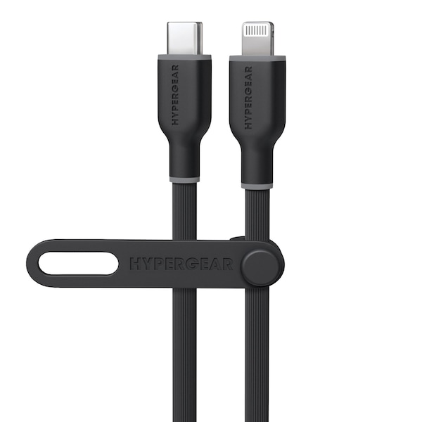 It's time for a charging upgrade. Super-soft and super-bendy, the HyperGear Flexi Pro USB-C to Lightning Fast Charge and Sync Cable flows where you take it and stays where you want it no more twists, kinks, and tangles. The super-durable and tear-resistant exterior is 10x stronger than standard cables while being oh-so-soft to the touch, and it comes with a silicone cable strap for on-the-go convenience. MFi certified for safe and seamless use with all Apple Lightning devices, and Power Delivery-enabled so you can super-fast charge your iPhone from 0 to 50% in around 25 minutes.