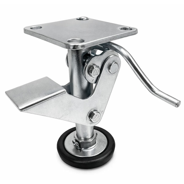 This Floor Lock with a Non-Slip Rubber Foot is designed to secure carts and equipment in place with reliable, easy operation. Its welded steel construction provides strength and durability, making it suitable for demanding industrial environments. Available in 4in, 5in, 6in, and 8in size options, it offers compatibility with a wide range of carts and platforms. The foot-operated design allows quick engagement and release, helping users stabilize loads without bending or straining. A zinc-plated finish adds corrosion resistance for long-lasting performance. With a top plate measuring 3 15/16in x 4 1/2in and bolt hole spacing from 2 5/8in x 3 21/32in to 3in x 2 31/32in, this floor lock installs easily using standard 3/8in bolts.