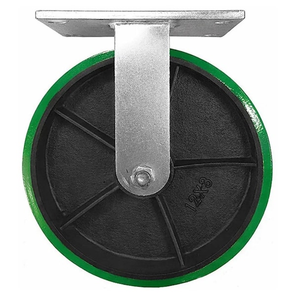 Heavy Duty Caster 12in x 3in Polyurethane on Cast Iron Wheel - Rigid