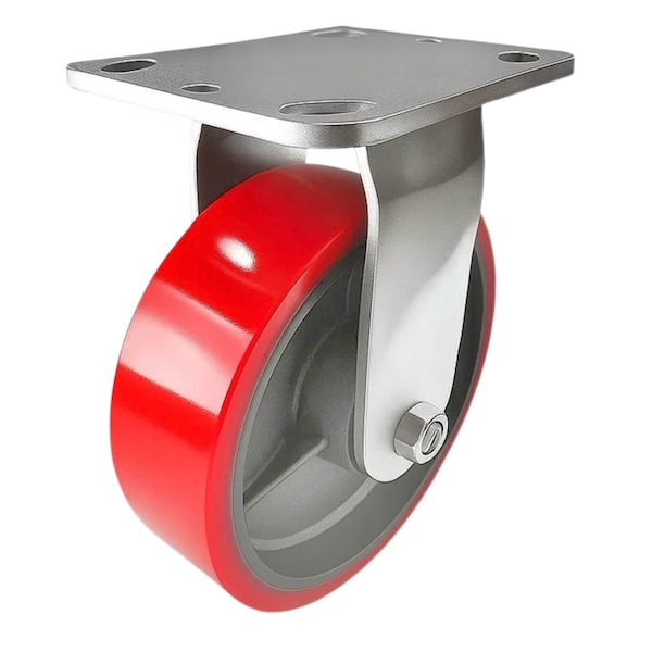 Heavy Duty Caster 6in Red Polyurethane on Cast Iron Wheel, Rigid