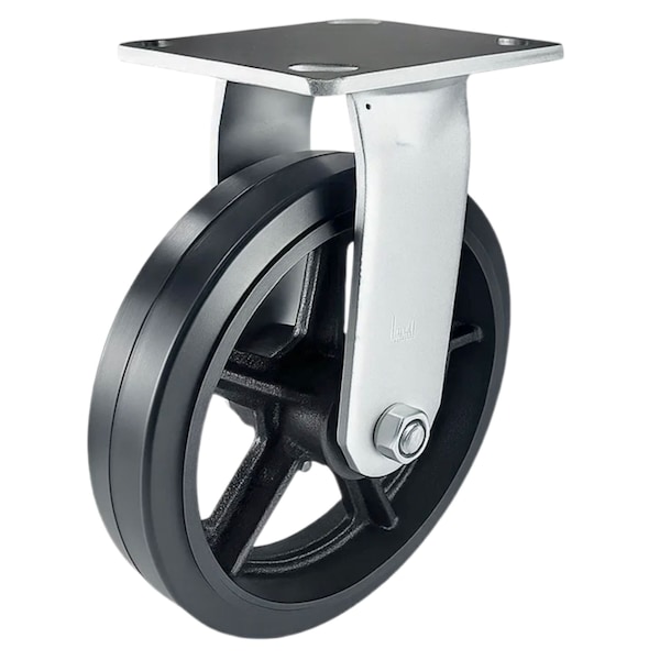 Heavy Duty Caster 8in Rubber on Cast Iron Wheel, Rigid