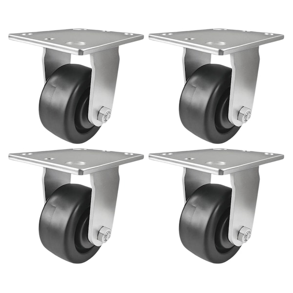 Heavy Duty Caster Set 4in Plastic Wheels, 4 Rigid, 4PK