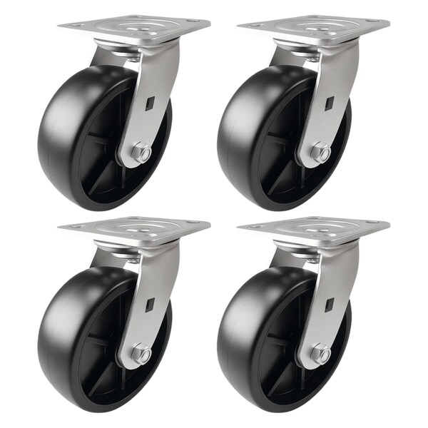Heavy Duty Caster Set 6in Plastic Wheels, 4 Swivel, 4PK