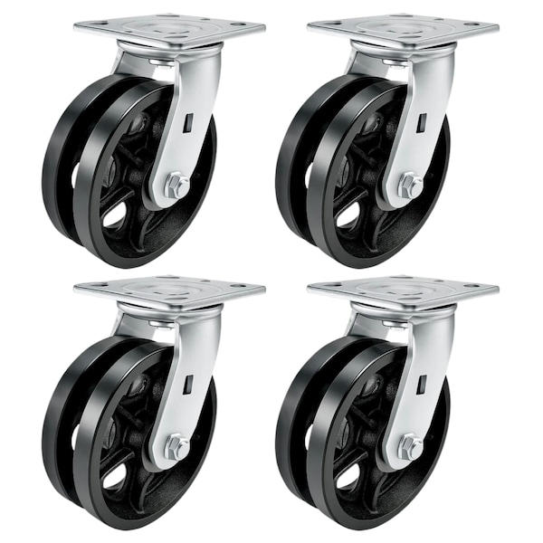 Heavy Duty Caster Set 6in V-Groove Wheels, 4 Swivel, 4PK