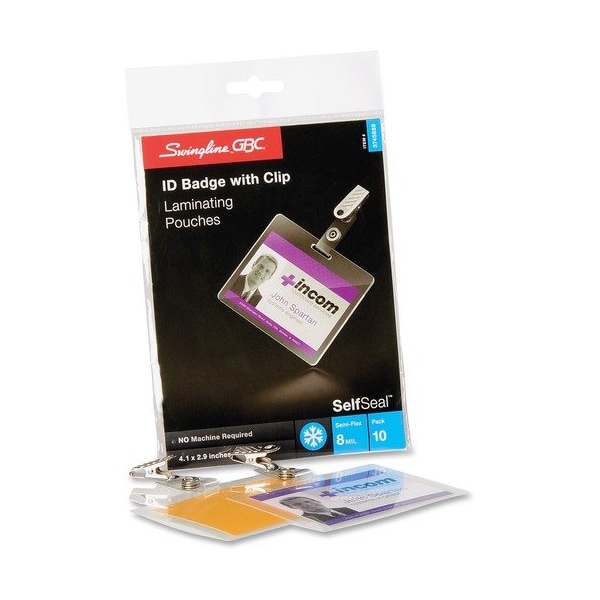 LAMINATING ID POUCH W/CLIP, 8MIL, HORZ, 4-1, 10PK