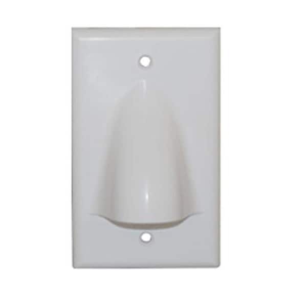 Features -ICC's single &double gang bulk nose faceplates are designed to accommodate the pass through of cabling with existing and/or oversized connectors. These faceplates can be installed upside down for better cable entry or exit. -Configured to fit standard single gang low voltage outlet boxes -Designed to accommodate connectorized cables used in residential and commercial applications rugged and durable construction -Glossy finish to accommodate most wall color accent. -Height - 0.1 -Length - 4.5 -Width - 3 -Color - White -Item Weight - 0.8 lbs.