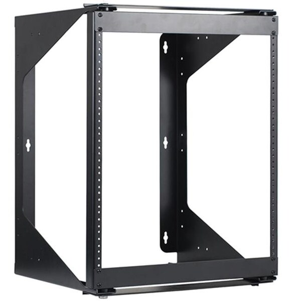 ICC's new Wall Mount Swing Frame Rack is a cost effective solution for installations where floor space is limited 12U rack mount spaces (RMS) with 18 in. deep measuring from front to rear. This is an ideal application for an equipment or telecommunications room for supporting voice. data. audio. video and security equipment such as patch panels. routers. switches and other 19 in. wide equipment. The swing-out mounting rail allows access to the back of mounted equipment and makes troubleshooting fast and easy.FeaturesDesigned with durable steel construction. black textured powder coated. supports up to 85 pounds of equipmentDesigned with a 18 in. depth making it ideal for installing voice and data equipment such as patch panels. active components. shelves. drawers. and cable management products creating a neat structured and organized cabling systemReversible installation allows installers to swing the gate left or right after installation providing easy access to equipmentIdeal for installations with space limitations prohibiting the use of floor mount racksMounting screw template Contains to speed up installationStandard 19 in. rack mount widthCable anchor points in the rear for cable ties and strapsUsed with many of ICC's rack mount products