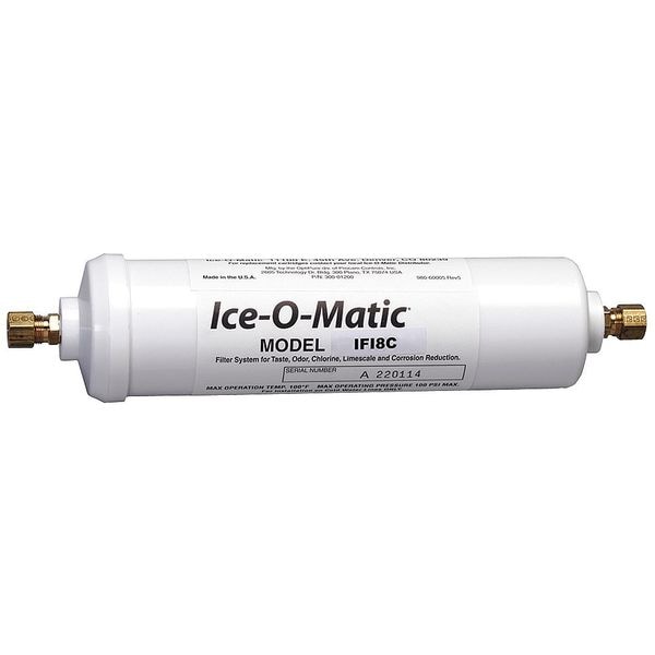 Inline Water Filter, Reduces Chlorine Odor, Chlorine Taste, Sediment, Objectionable Tastes, Micron Rating 10 micron, Flow Rate 0.5 gpm, Diameter 2 1/2 in, Overall Height 2 1/2 in, Service Life Not Rated, Filter Media Carbon, Maximum Temperature 100 Degrees F, Pipe Size 3/8 in, Application Cold Beverage Dispensers, Food Service Coffee Makers, Food Service Steamers, Ice Makers, Whole-House Filtration, For Use With Ice-O-Matic Models, Standards NSF, NSF 42, Series IF