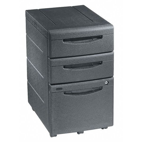 File Cabinet, Color Black, Finish HDPE, Material HDPE, Number of Drawers 3, Overall Depth 22 in, Overall Height 28 in, Overall Width 16 1/2 in, Assembly Fully Assembled, Includes Casters, File Folder Bars, (2) Keys