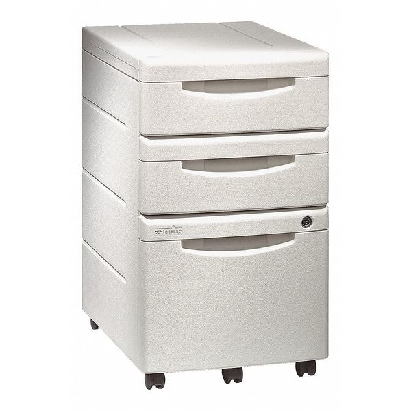 File Cabinet, Color Platinum, Finish HDPE, Material HDPE, Number of Drawers 3, Overall Depth 22 in, Overall Height 28 in, Overall Width 16 1/2 in, Assembly Fully Assembled, Includes Casters, File Folder Bars, (2) Keys