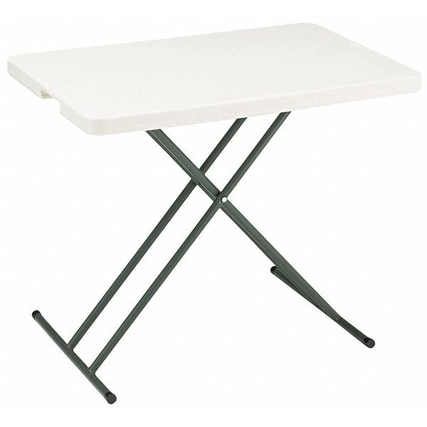Folding Table, Surface Material Blow Molded Polyethylene, Rectangle, Width 20 in, Length 30 in, Height 25 in to 28 in, Tabletop Color Family Gray, Tabletop Color Platinum, Frame Color Charcoal, Assembled/Unassembled Assembled, Frame Material Steel, Edge Color Not Applicable, Edge Type Bullnose, Leg Type Scissor, Table Material Polyethylene, Top Thickness 2 in, Series IndestrucTable TOO (TM), Load Rating 25 lb, Standards ANSI, BIFMA, Includes Non-Marring Protective Foot Cap