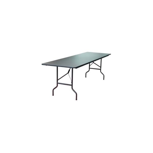 STRONG AND DURABLE, THIS MULTIPURPOSE TABLE EXPANDS WORK SPACE IN THE OFFICE AND PROVIDES EXTRA SEATING IN SCHOOLS, BANQUET HALLS, HOMES AND CAFETERIAS. THE WEAR RESISTANT, MELAMINE LAMINATED 3⁄4" SURFACE FEATURES A SEALED UNDERSIDE THAT REPELS MOISTURE, SPILLS AND RESISTS HOT AND COLD TEMPERATURES. STURDINESS IS ENSURED BY THE HEAVY DUTY LEG SUPPORTS AND GRAVITY LOCK. THE BULL-NOSE, CHARCOAL VINYL T-MOLD EDGE PROTECTS TOP FROM ACCIDENTAL DAMAGE. FULL PERIMETER STEEL SKIRT SUPPORT WITH PLASTIC CORNERS PROTECTS SURFACE WHEN STACKED IN STORAGE. LEGS ARE 1" DIAMETER, HEAVY GAUGE STEEL WITH HEAVY DUTY FOOT CAPS TO PROTECT FLOORING. 1000 LBS. WEIGHT CAPACITY WHEN EVENLY DISTRIBUTED. 1