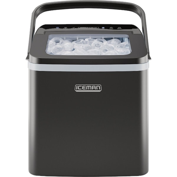 Portable unit produces a new batch of ice every 7-10 minutes with a choice of large or small bullet-shaped ice cubes. 6 indicator functions: Standby Mode Full Mode Low Water Refill Small Ice and Large Ice. Self Clean mode. Small and compact. Viewing window. Carry handle.