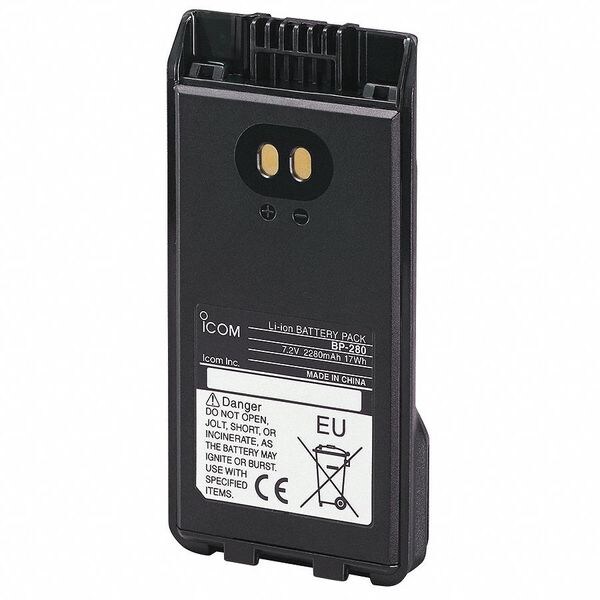 Radio Battery, Product Type Radio Battery, Compatible Radio Type Handheld, Compatible Radio Brand Icom, Compatible Radio Series F1100D, F2100D, Compatible Radio Manufacturer Model Number F1100D, F2100D, Compatible Radio Grainger Model Number 54ZU80, 54ZU81, 55AA12, 55AA13, 55KD83, 55KD84, 55KD85, Battery Capacity 2,400 mAh, Battery Type Lithium Ion, Compatible Product Type Portable Two Way Radio, Waterproof Yes, IP Rating IP67, Voltage 7.2 V, Maximum Recharge Time 3 1/2 hr, Color Black
