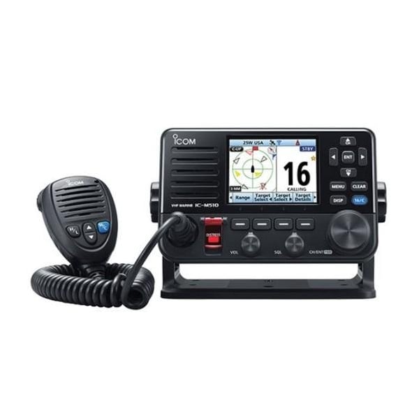 ICOM Black Fixed Mount 25W Class D DSC Front/Rear mic radio with color display w/ AIS Receive | M510 PLUS 21 USA