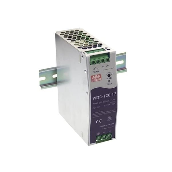 WDR-120-24 - AC/DC Industrial DIN rail power supply - Output 24VDC at 5A - metal case - Ultra wide input 180-550VAC for single a