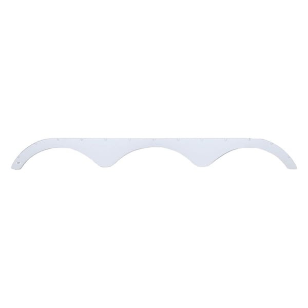 Polar White triple axle fender skirts measure to 104-3/4 x 11-3/4. Constructed of durable high-impact ABS plastic. This replacement fender skirt is textured. Our triple axle fender skirts are designed in halves, with a snap together flange in the middle.