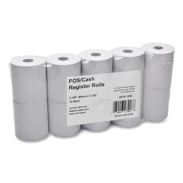 Direct Thermal Printing Thermal Paper Rolls, 3.13 x 230ft, Wht, PK10 (Discontinued)