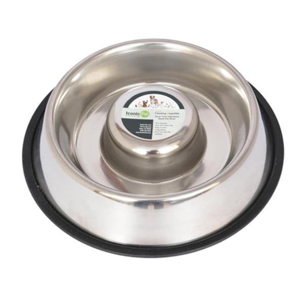 24 oz Slow Feed Stainless Steel Pet Bowl for Dog or Cat - Medium