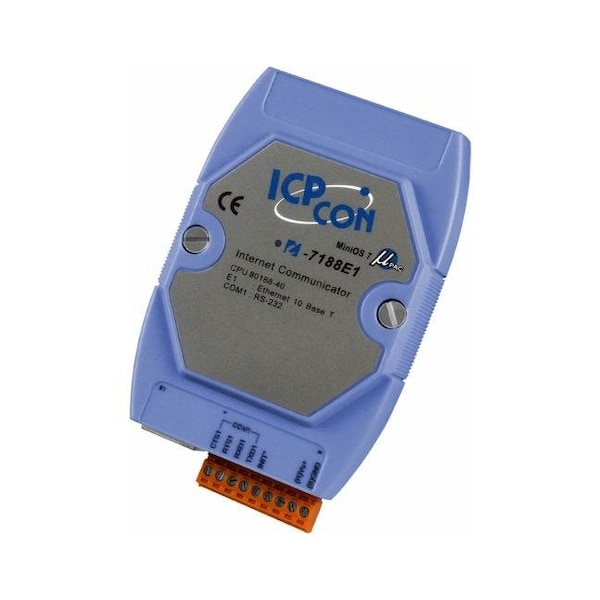 ICP DAS I-7188E1 - 1 Serial Port to Ethernet Converter / Intelligent Controller with 40 Mhz CPU. MiniOS7 Operating System