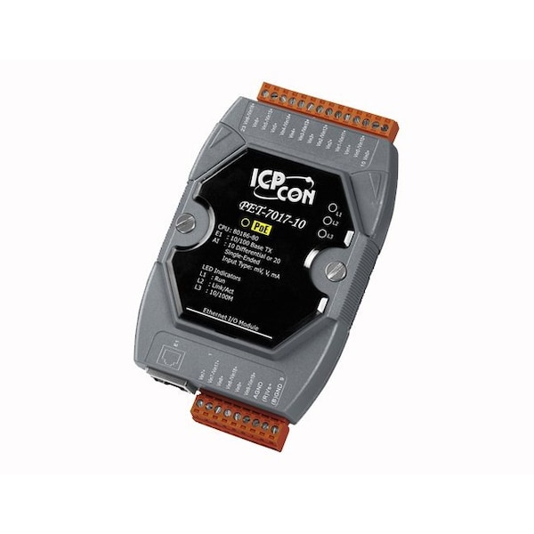 PET-7017-10 - ICP DAS 10/20-channel Voltage & Current Analog Input Module with High Voltage Protection PoE Module