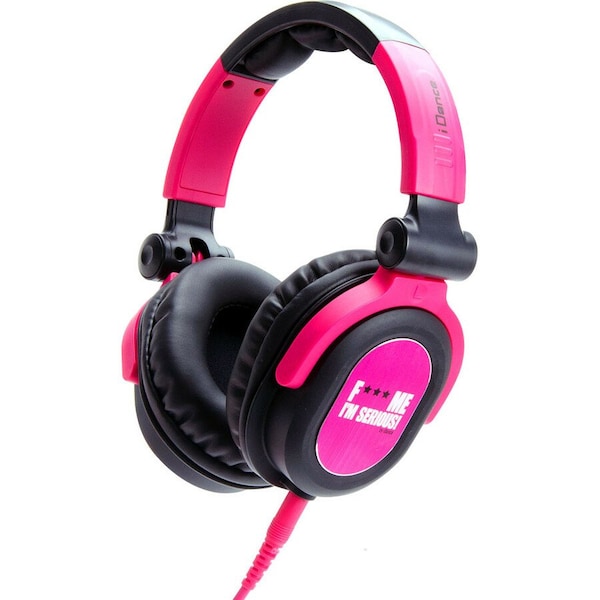 With these colors & how could you not be taken seriously? The F Me I'm Serious headphones feature a swivel cup headphone for easy DJ monitoring, breathable padding for extended use, & a large neodymium driver for optimal frequency response. Fun in appearance, but meant for serious use by the most demanding DJs, the F Me I'm Serious Series headphones are for the true professional who wants to make a statement! Compatible w/iPod, iPod Touch, & iPhone all generations High-quality full-range headphones designed for DJs Swivel cup to monitor audio & cue audition Breathable padding that remains comfortable during extended use Large 50mm driver, neodymium magnet for optimal frequency response Detachable cord for EZ replacement Driver Unit: 40mm Driver Type: Neodymium Impedance: 40-ohms Sensitivity: 100dB +/- 3dB Frequency Response: 15Hz20KHz Cord Length: Approx.1.5m Cable Type: PVC Detachable Gold Chrome 3.5mm Plug