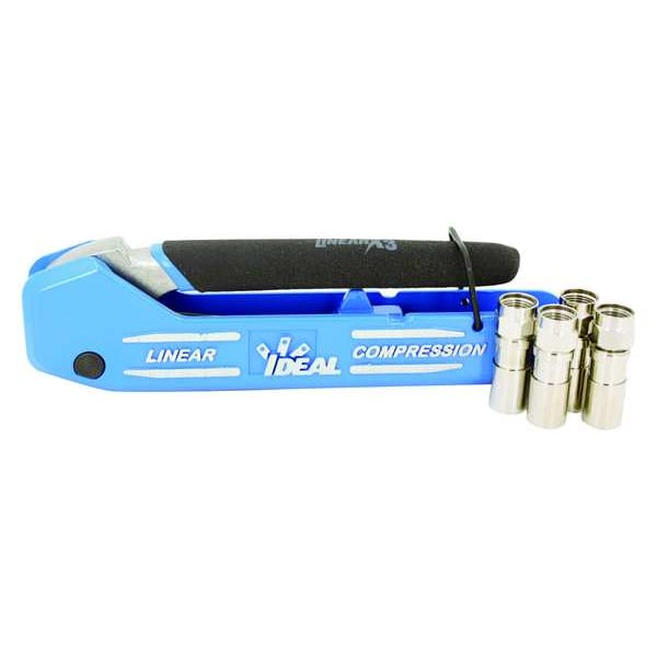 Compresses 21mm (Industry Standard) F Compression Connectors; Durable and Rugged; Captive Linear Stroke For Consistent Compression Results and Easy Operation; Includes: (4) RTQ RG6/6Quad Weatherproof F-Compression Connectors