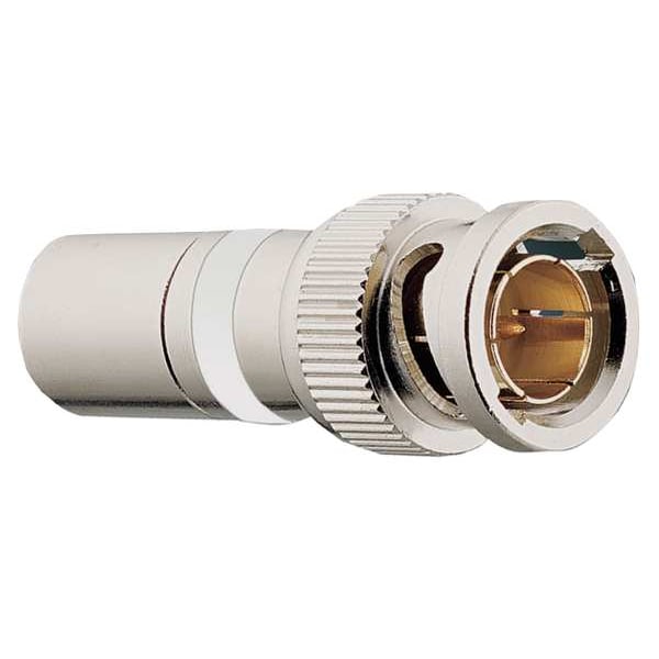 Coaxial Connector, Gender Male, Product Type Connector, Color Silver, Installation Method Compression, Compatible Coaxial Cable Type RG-59, Maximum Frequency 3 GHz, Maximum Impedance 75 ohm, Connector Type BNC, Finish Nickel-Plated, Compatible Cable Fire Rating Plenum, Material Brass, Package Quantity 15