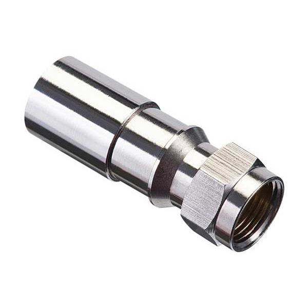 Connector, Gender Male, Product Type Connector, Color Silver, Installation Method Compression, Compatible Coaxial Cable Type RG-6, Maximum Frequency 3 GHz, Maximum Impedance 75 ohm, Connector Type F-Type, Finish Nickel-Plated, Compatible Cable Fire Rating Plenum, Features Use in Cable and Satellite TV Installations, Material Brass, Package Quantity 10