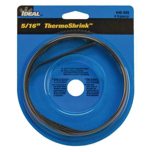 Heat Shrink Tubing, Thin Wall, Material Polyolefin, Flexible, Flame Retardant Yes, Adhesive Lined No, Shrink Ratio 2:1, Use With Wire Size 10 AWG to 6 AWG, I.D. Before Shrinking 0.35 in, I.D. After Shrinking 0.16 in, Wall Thickness After Shrinking 0.02 in, Length 4 ft, Shrink Tubing Properties UV Light-Resistant, Color Black, Temp. Range -55 Degrees to 125 Degrees F, Package Style Individual Pieces, Min. Shrink Temp. 158 Degrees F, Dielectric Strength 600 V, Max. Temp. Rating 125 Degrees F