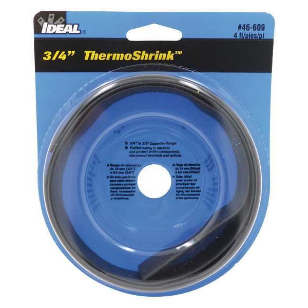 Heat Shrink Tube, Thin Wall, 2:1 I.D. Shrink Ratio, 0.81 in I.D. Before Shrinking, Black, 4 ft