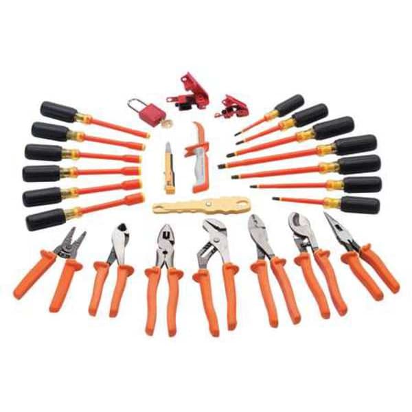 Ideal's 35-9102 Insulated Tool Set is the ideal tool kit for working on electrical and telecomm systems. It contains a range of essential tools you need to do your job, including insulated tools. Ideal offers an extensive range of insulated tools, with 27 pieces in total. This includes 4 pliers, 5 electrical and telecomm tools and 6 nut drivers and nutsetters. The tool set also has 2/0 Cable Cutter, Fuse Puller, Multi-Crimp Tool, T-5 Wire Stripper and Volt Sensor NCV Tester as its electrical and telecomm tools. Ideal's 35-9102 Insulated Tool Set gives you everything you need to work on electrical and telecomm systems effectively.