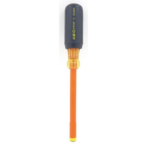 Nut Driver, 3/16 in., Solid, Ins, 5 in.