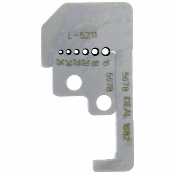 Wire Stripper Replacement Blades, Part Type Stripper Replacement Blade, For Use With Wire Stripper 45-171, Compatible with Grainger Part Number 10F592, Compatible with Manufacturer Model Number 45-171, Compatible with Series 45 Series, Blade Material Steel, Number of Blades 1, Features Inner cutting hole, Mil-spec die-type blades, For Wire/Cable Type Solid Wire, Stranded Wire, Maximum Wire/Cable Diameter 16 ga, Overall Length 1 4/5 in
