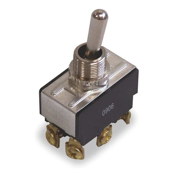 Toggle Switch, Contact Form DPDT, Number of Connections 6, Switch Function On/On, AC Contact Rating 10 A @ 277 V, 20 A @ 125 V, HP 1 1/2 hp, Terminals Screw, Mounting Hole 0.50 in dia, DC Contact Rating 21 A @ 14.8 V, Actuator Style Bat, Actuator Length 0.75 in, Stem Length 0.5 in, Stem Dia. and Thread Size 15/32-32 NS-2A, Operating Temp. Range 32 Degrees to 185 Degrees F, Actuator Color Silver, Stem Color Silver, Special Features Factory Tested 100,00 Cycles to 21A @ 14.8V DC