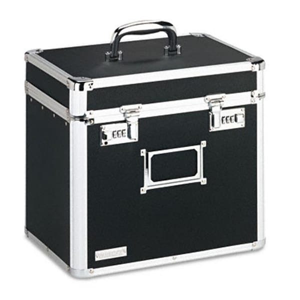 Inner Depth: 9 in. Color: Black. Strength: Basic. Box Type: Storage. Depth: 10-1/2 in. Inner Width: 12-1/4 in. Height: 13-1/4 in. Inner Height: 11-1/4 in. Closure: Combination-Lock Lid. File Size Format: Letter. Width: 13-1/2 in. Type: File Boxes-Storage. Material: Aluminum Chrome PVC Rubber. For Use With: Hanging Files.