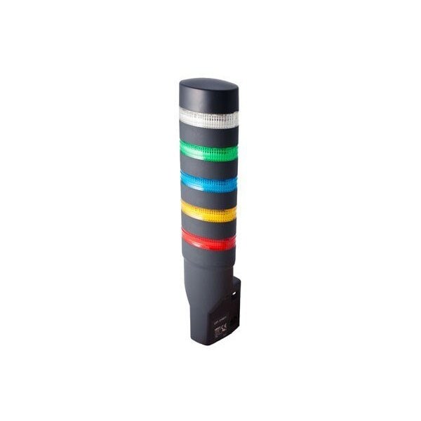 LD6A Series Assembled Unit, 5 Tier, w/ Black Housing, Frame Mount, Steady, IP65, Red/Yellow/Blue/Green/White LED, Red/Yellow/Blue/Green/Clear Lens