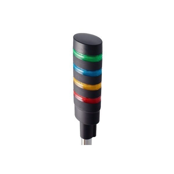 LD6A Series Assembled Unit, 4 Tier, w/ Black Housing, Pole Mount w/ Base, Steady, IP65, Red/Yellow/Blue/Green LED, Clear Lens