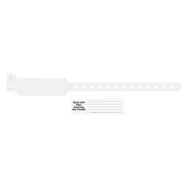 ID Wristband, Pocket, Number Series Blank, Material Vinyl, Color White, Length 11 In., Width 1-3/8 In., Legend Blank, Includes Pocket Band with Insert Card, Package Quantity 500