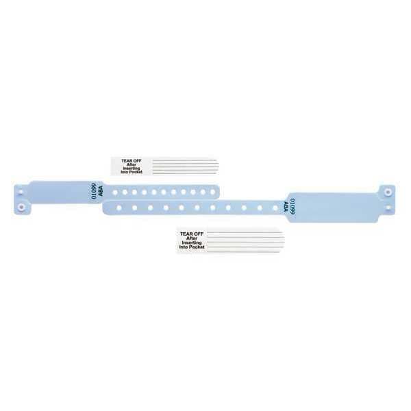 ID Wristband Set, Medical, Number Series Consecutively Numbered, Material Vinyl, Color Blue, Length 9-3/8 In., Width 1-1/4 In., Legend Blank, Includes Adult Wristband and Child Wristband 6-5/8 In.L x 1-1/4 In.W, Pocket Band with Insert Card, Package Quantity 300