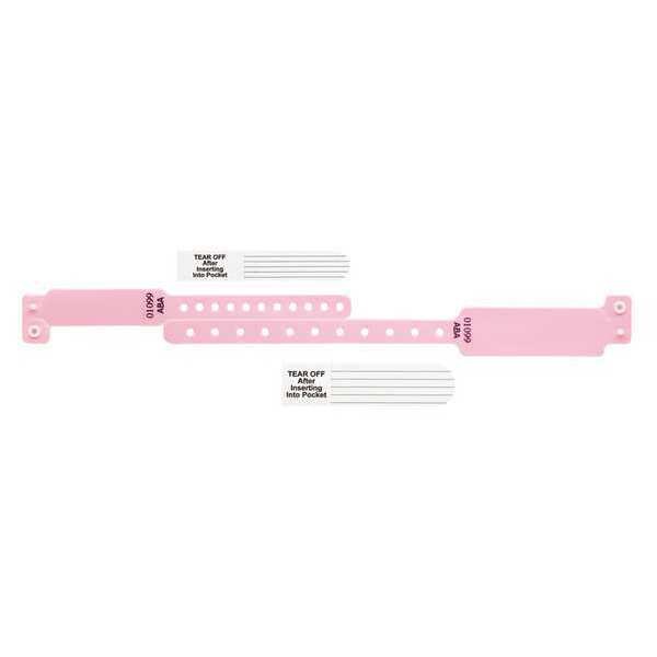 ID Wristband Set, Medical, Number Series Consecutively Numbered, Material Vinyl, Color Pink, Length 9-3/8 In., Width 1-1/4 In., Legend Blank, Includes Adult Wristband and Child Wristband 6-5/8 In.L x 1-1/4 In.W, Pocket Band with Insert Card, Package Quantity 300