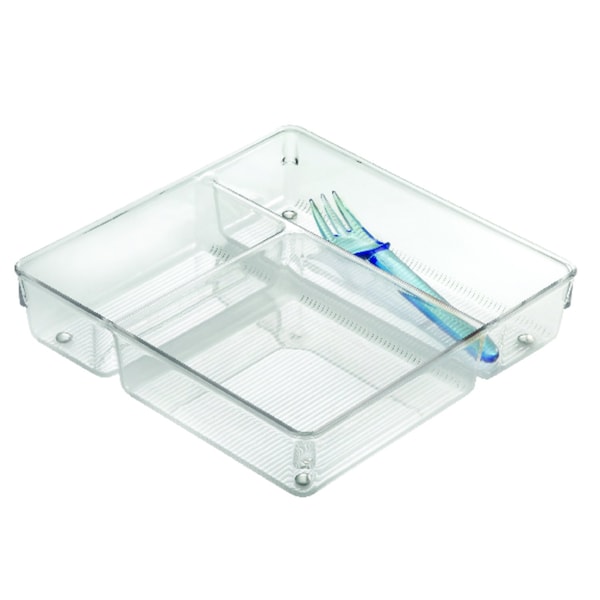 Ideal for pencils, pens, arts crafts, office supplies, flatware, kitchen gadgets. Versatile sizes to fit within any drawer dimensions. Clear respire plastic with chrome. This drawer organizer with 3-compartments is great alone or with the other clear plastic drawer organizer trays. These allow you to custom design your drawers, so you can store exactly what you want neatly. The clear plastic design allows you to see all of your items and makes drawers appear clutter-free.