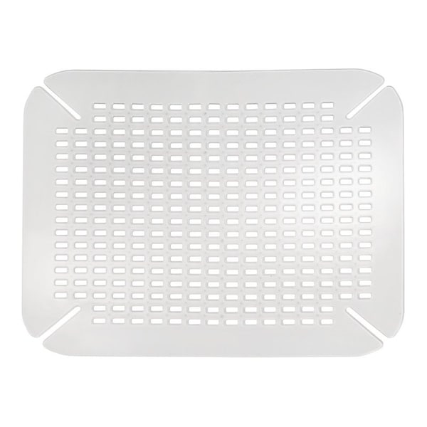 Use to protect sinks from scratches and wear. Lays flat in larger sinks and gradually curves up in smaller sinks. Great for kitchen or laundry rooms. 16 in x 14 in x 0.3 in.
