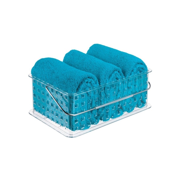 Simple, convenient storage for anywhere in your home, the InterDesign clear plastic basket with chrome handles will be a welcome addition. Perfect for the bathroom, kitchen, laundry room or playroom, the storage options are endless.