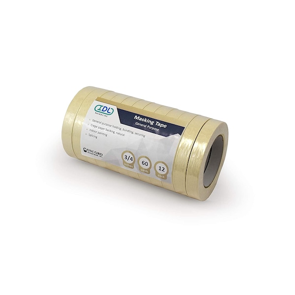 IDL Packaging 3/4" General Purpose Masking Tape, 60 Yards per Roll, Natural Rubber (Pack of 48 Rolls) Masking tape roll dimensions : 3/4 (0. 71") - width, 60 yards - length, 5 mil - thickness. Get crisp clean lines with this white masking tape. General purpose tape for painting, light packaging and sealing as well as other uses. Painting tape has excellent adhesion yet easy to remove when the job is finished. Sold in 12 roll tape pack or 48 roll case of white masking tape for large jobs.